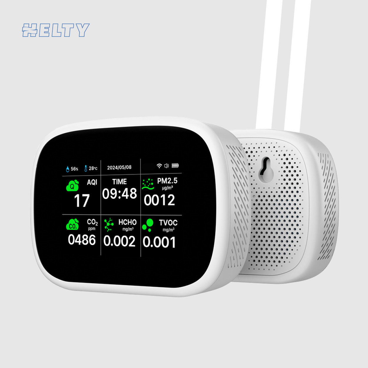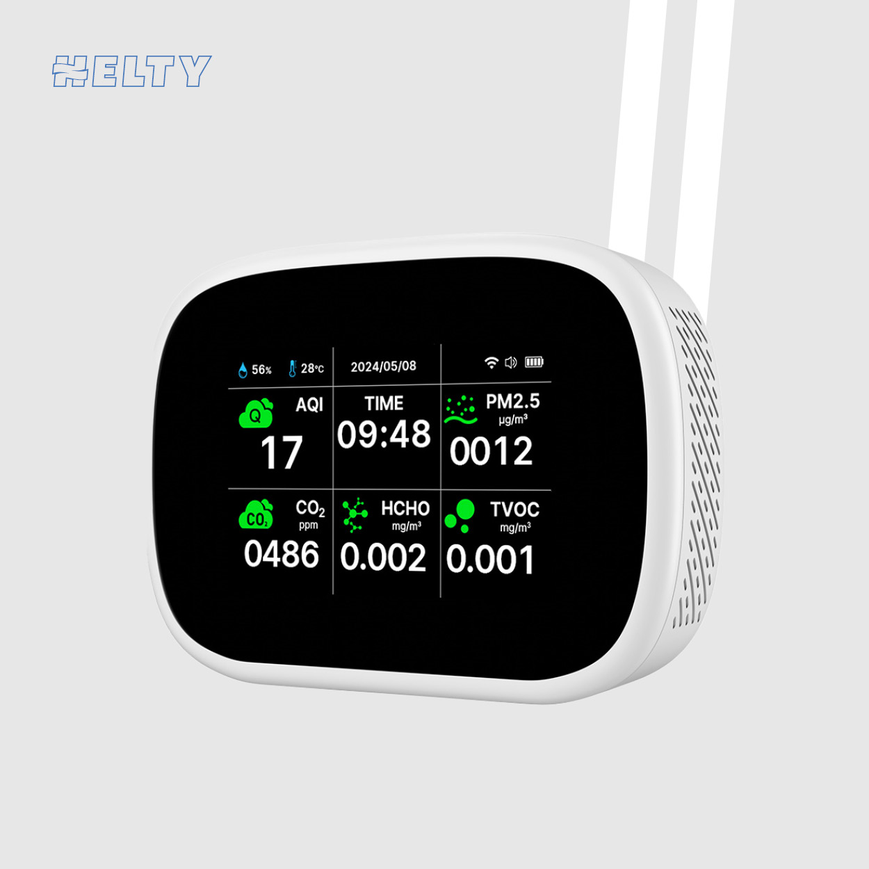 Oltrei a temperatura, CO2 e umidità, il sensore opzionale IAQ Monitor Helty aggiunge il
